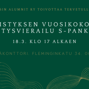 Pörssiläinen, tiesithän, että voit liittyä yhdistyksen jäseneksi jo opiskeluaikana. Sinun ei siis tarvitse olla vielä valmistunut liittyäksesi Pörssin Alumnien jäseneksi ja tullaksesi mukaan toimintaamme.